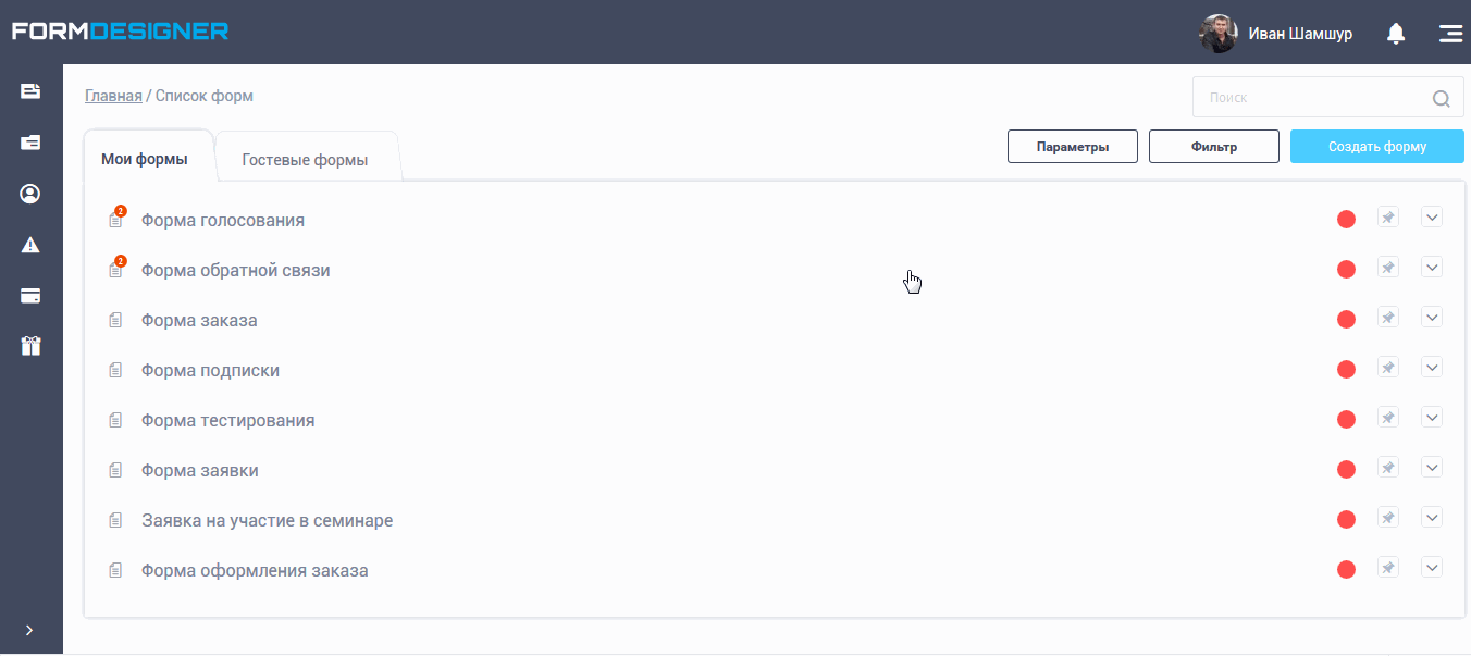 Если у вас еще нет аккаунта в нашем конструкторе форм, то сейчас самое время зарегистрироваться. После регистрации войдите в свой личный кабинет и откройте список форм.
