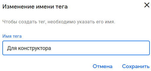Укажите имя тега и нажмите "Сохранить":