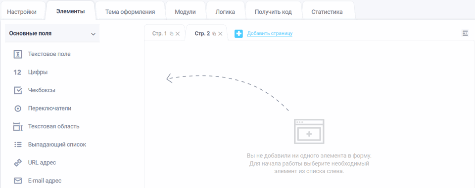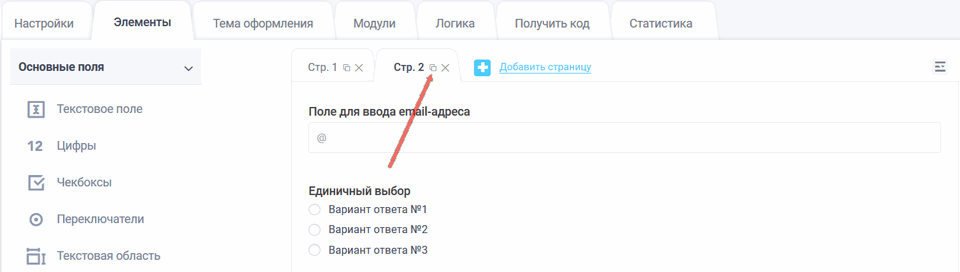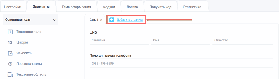 Чтобы добавить новую страницу в необходимой форме, нажмите ссылку "Добавить страницу":