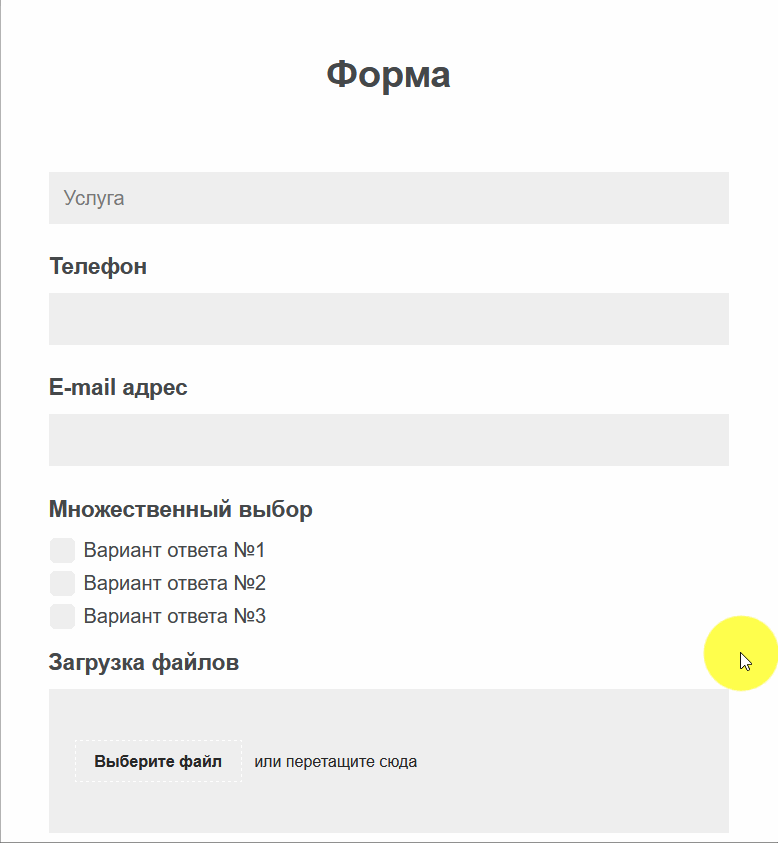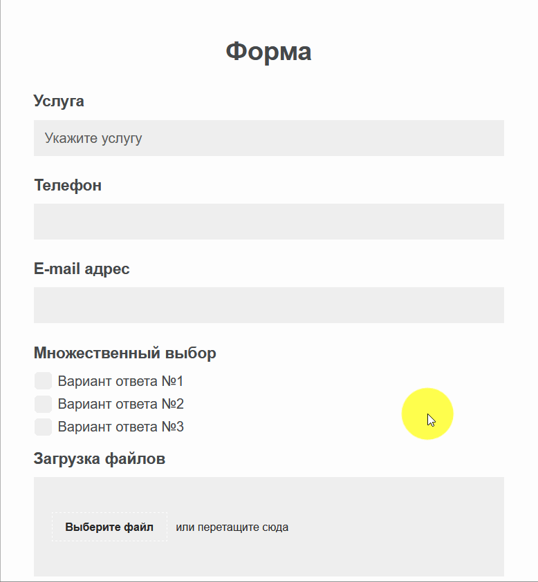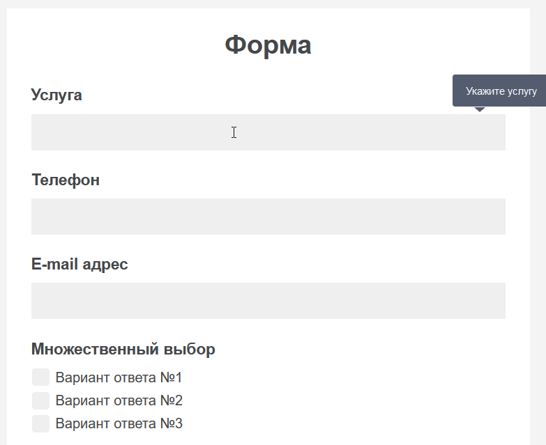 - Варианты ответов (множественный выбор, переключатели, список, автозаполнение)