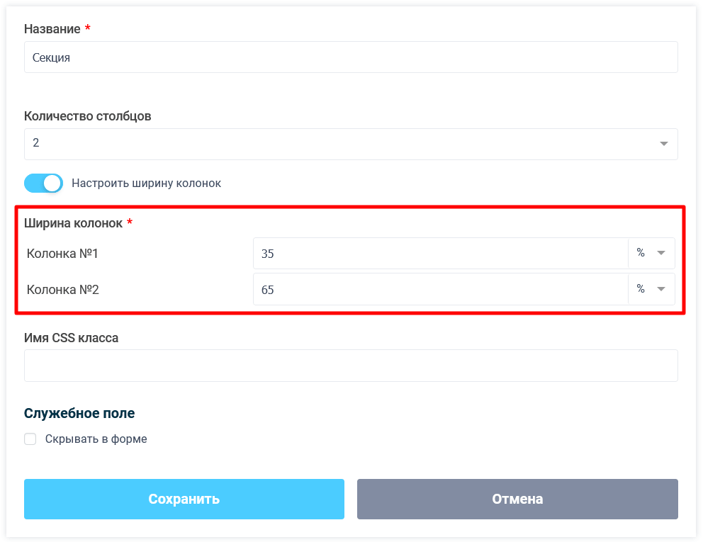 Сегодня рады сообщить о новой возможности, которая стала доступна в нашем конструкторе веб-форм, а именно мы добавили возможность вручную прописать нужную ширину колонок в секции.