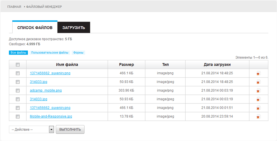 После чего перед Вами откроется главная страница файлового менеджера, где будут выводиться все ваши файлы.