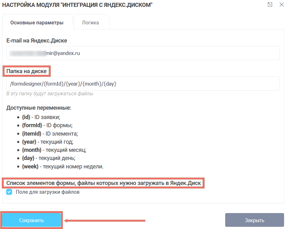 Как видно на скрине выше вы можете сами настроить, в какую папку будут загружаться файлы. Здесь мы решили вас не ограничивать и добавили специальные макросы, которые можно использовать в пути на Яндекс.Диске. Используя их вы можете настроить динамическую папку, которая будет автоматически создаваться при загрузке файлов, а не складывать все файлы в одну кучу!