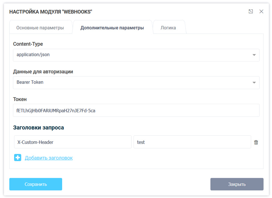 Над этим модулем мы очень сильно поработали и добавили возможность настраивать Content-Type, заголовки запроса и данные для авторизации.
