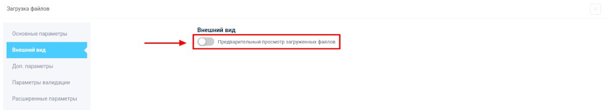 По просьбам многих пользователей добавили возможность включить предпросмотр загружаемых файлов в форме. Для этого, в настройках элемента, необходимо перейти в раздел "Внешний вид" и там активировать переключатель "Предварительный просмотр загруженных файлов":